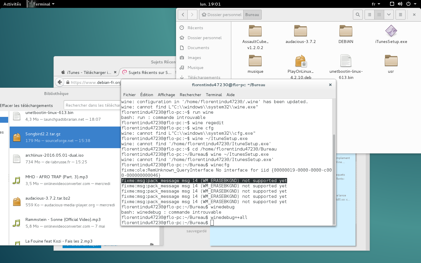 J’ai installé wine tout c’est très bien passé ( pas de message d’erreur ) et en configurant wine voici ce que mon terminal m’indique: