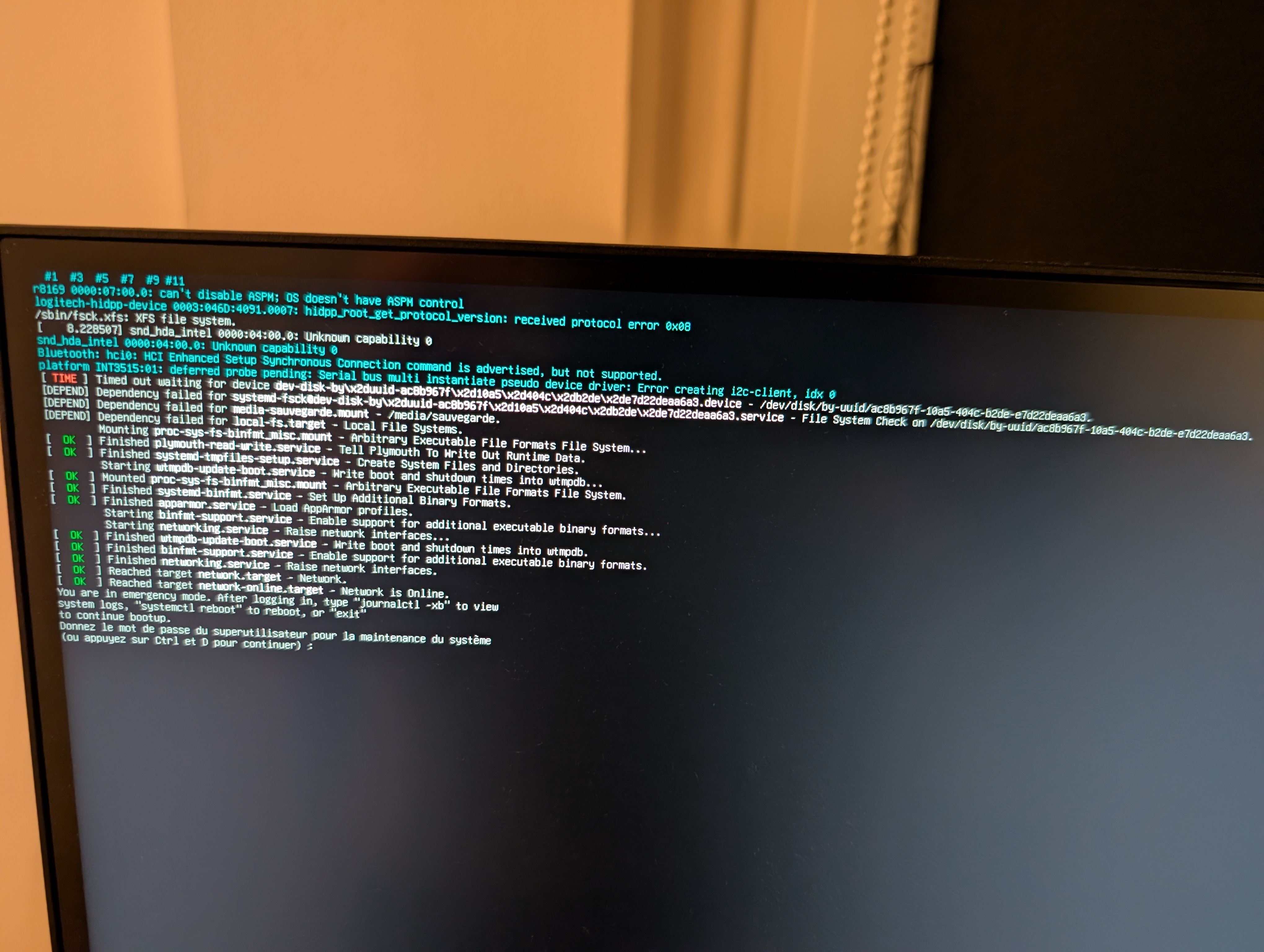 J’ai laissé tourner la sauvegarde se faire et en revenant mon pc ne réagissait plus et n’était pas en veille. Je reboot et j’ai un message d’erreur suivant.