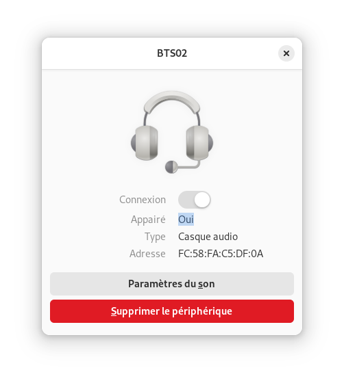 J’ai branché un dongle et branché / allumé une enceinte JBL, et tapé quelques commandes