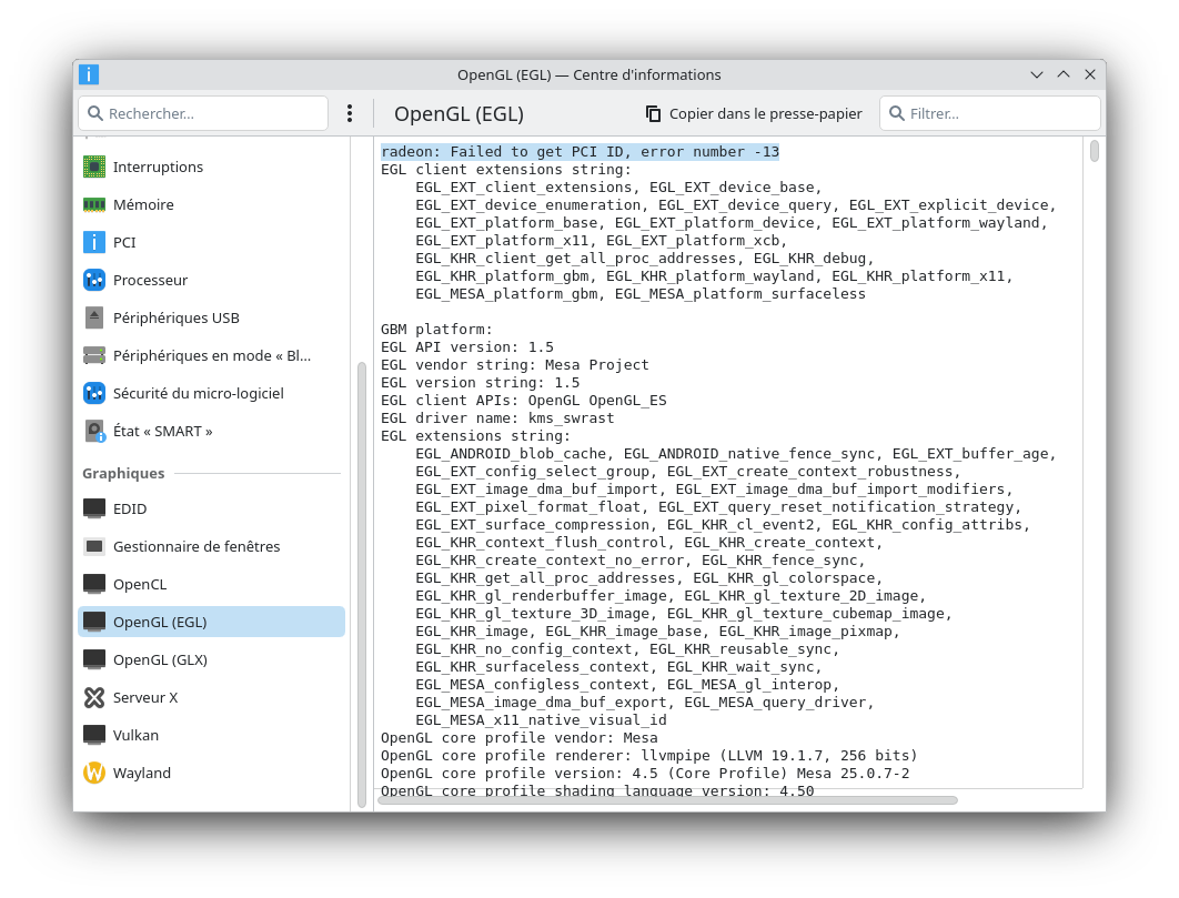 Ces deux mentions LLVM 19.1.7 ressemblent fort au processeur graphique llvmpipe rencontré sur la fenêtre d’infos système.