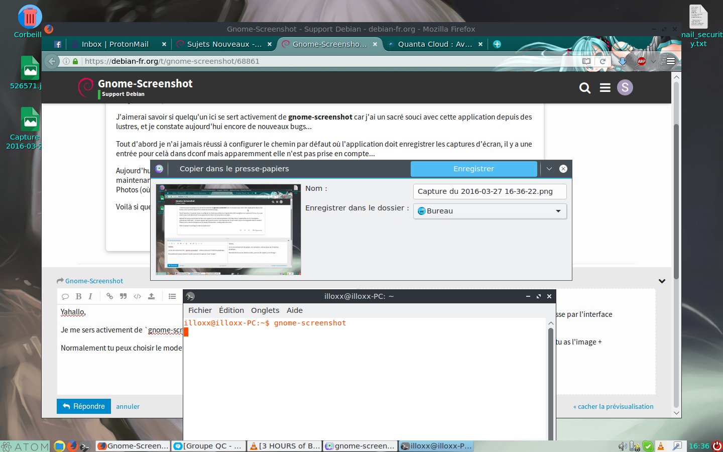 J’aimerai savoir si quelqu’un ici se sert activement de gnome-screenshot car j’ai un sacré souci avec cette application depuis des lustres, et je constate aujourd’hui encore de nouveaux bugs…
