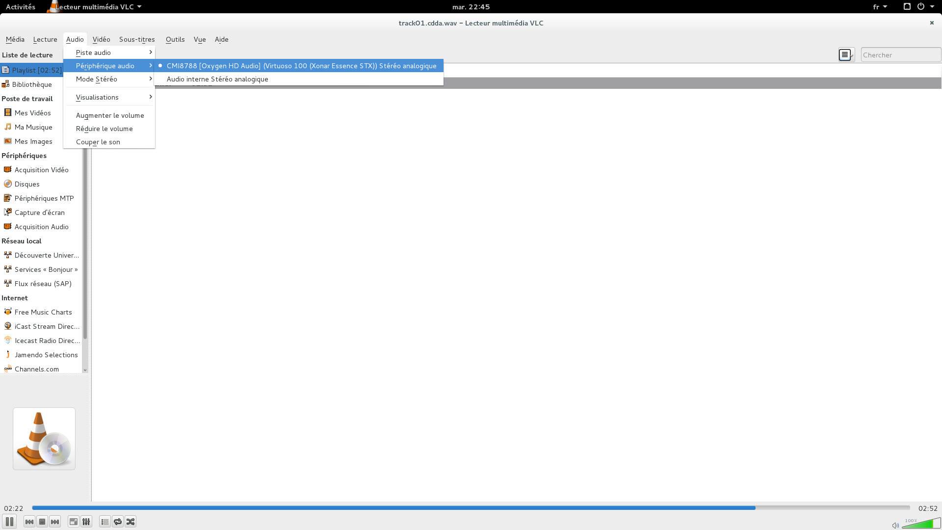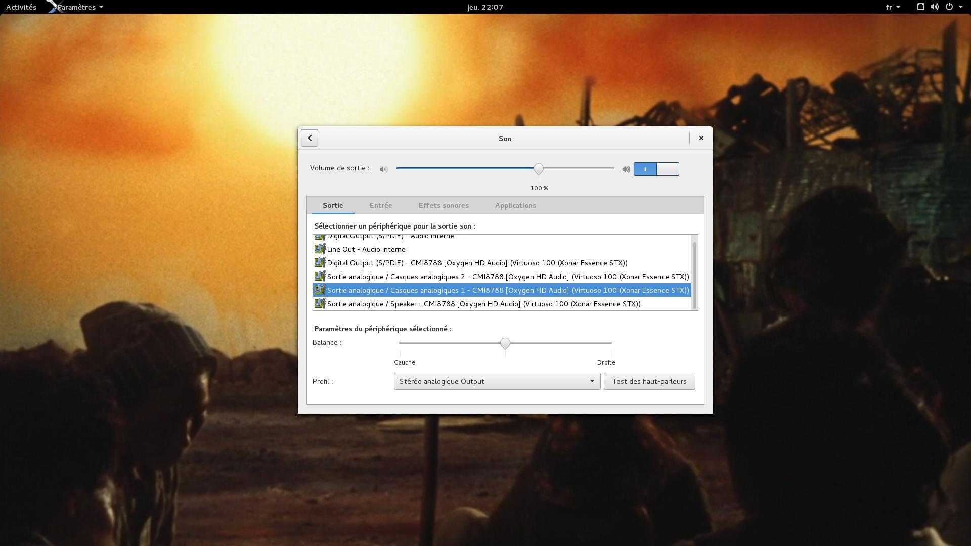 Et si dans peripherique de sortie, tu as éteint les 2 autres et laisser unmuute et à 100% le xonar, je pourrais plus t’aider.