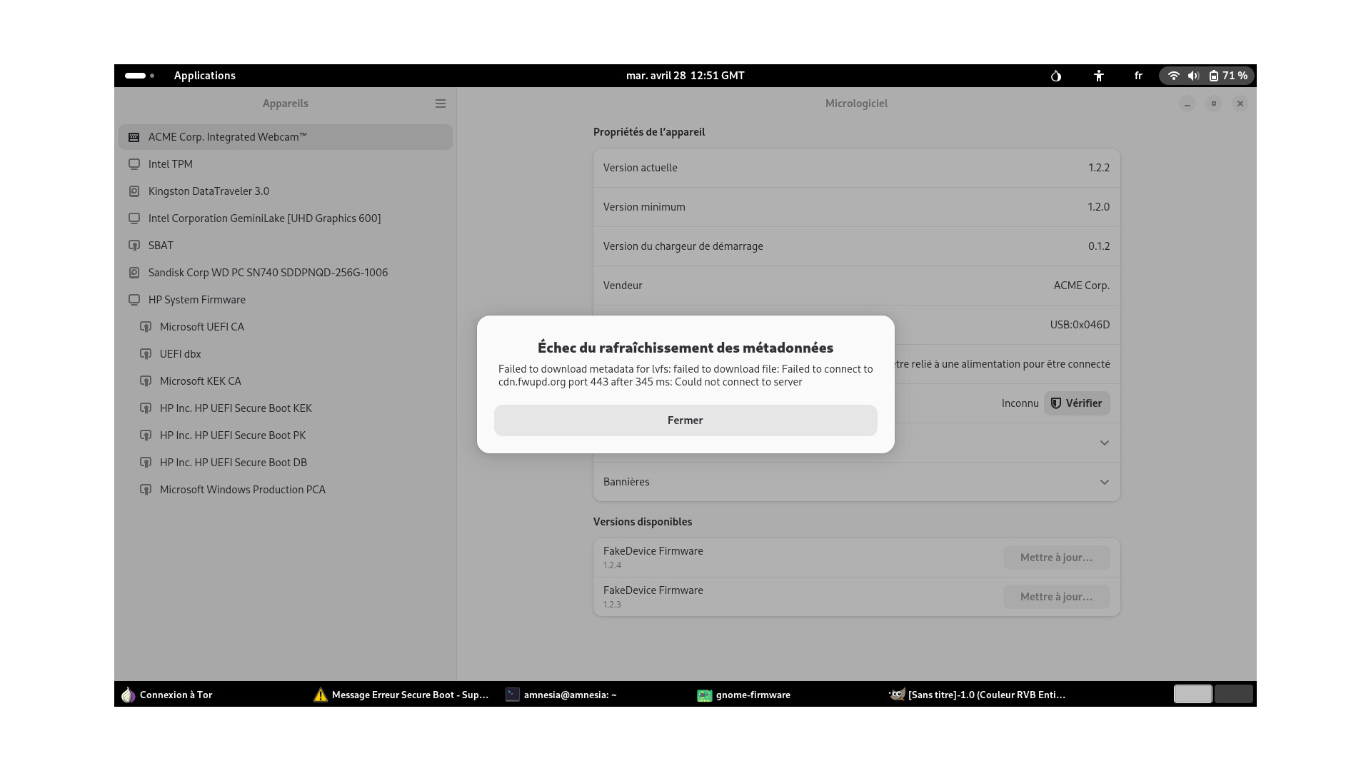 Le navigateur ne pose pas de problème dans mon cas de figure, c’est la ligne de commande et gnome-firmware (je n’ai essayé que ces solutions) qui sont bloqués.
