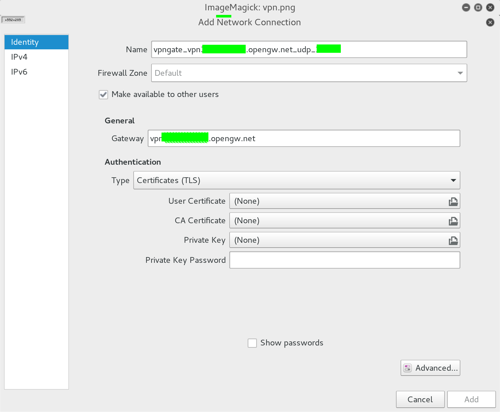 Pour cela je dispose d’openvpn installé, et d’un fichier .opvpn que je peux importer depuis le network manager, mais ensuite je ne peux cliquer sur “add”.