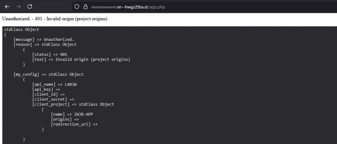 Côté client (le site web – autour du site web, l’authentification pour vérifier le « HTTP_ORIGIN ») c’est quelque chose comme çà – la méthode « zw3bApiClientModUsrAuthentification » de ce fichier zw3bApiClient.class.phps