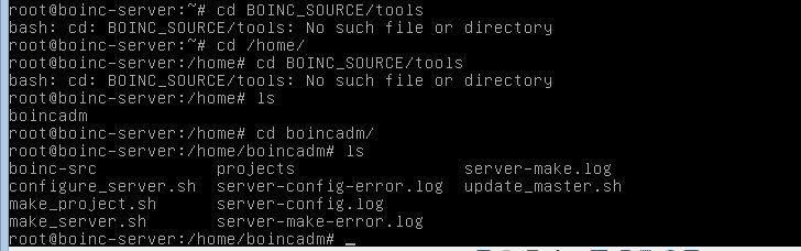 J’ai commencer hier à utiliser Debian 8 BOINC server pour la première fois dans le but d’effectuer le crack de mot de passe distribué, au premier temps je voulais accéder à “BOINC_SOURCE/tools” pour effectuer les configurations nécessaires du serveur BOINC mais il m’affichait