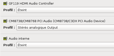 je n’ai pas de son, pourtant l’interface “pavucontrol” montre signe de vie sonore, et indique casques “plugged in”.