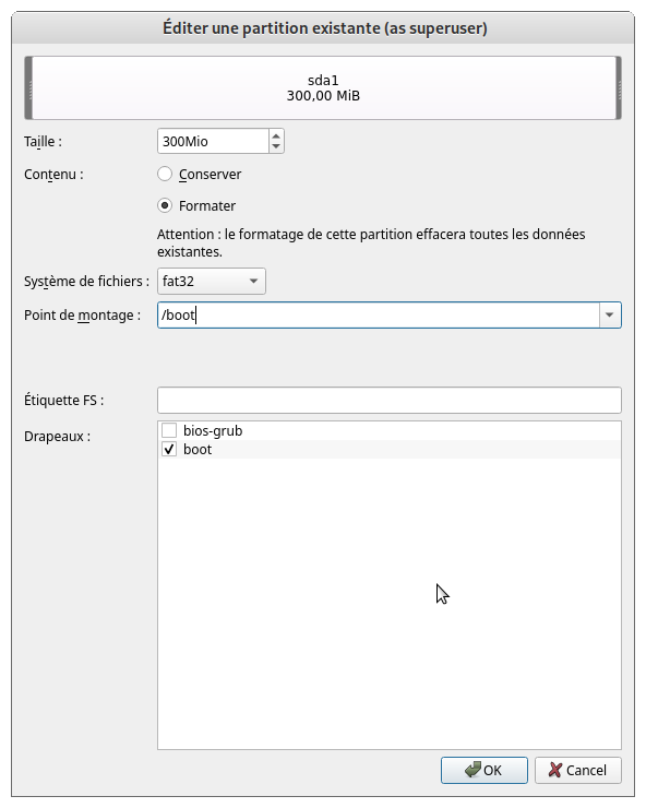 Est-ce que je peux réparer la partition sda1 boot esp en Fat 32 (si c’est elle qui est défaillante) (séparée de la partition Home