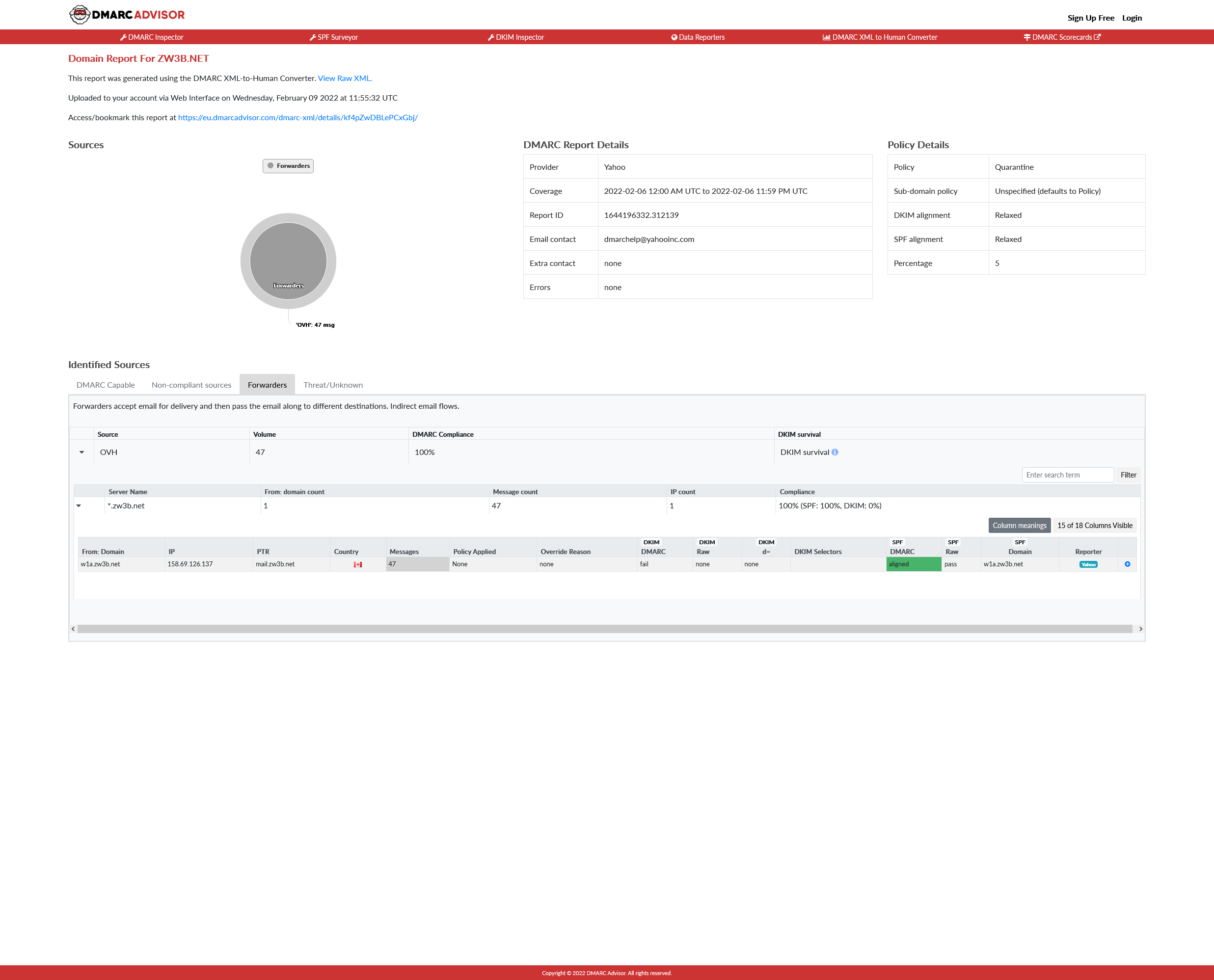 Note of Me ^^ 20220205220000 GMT +1 : je vous envoie mon fichier PHPs - tu vas avoir la même page que moi de rapports DMARC si tu copies colles le code source sur ton serveur - avec les couleurs